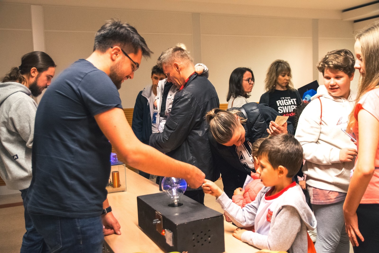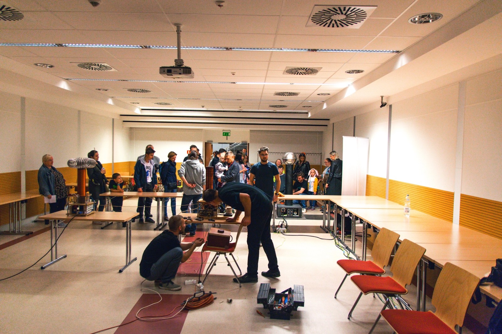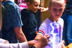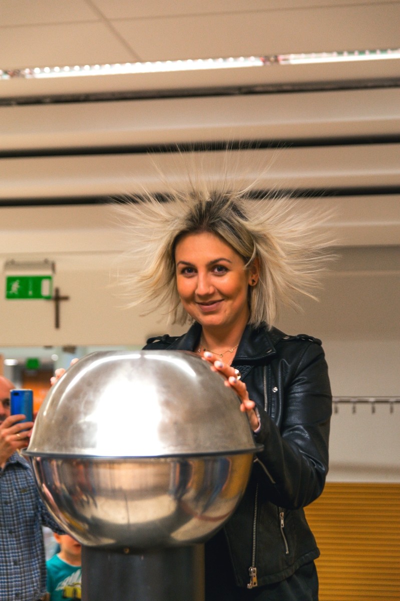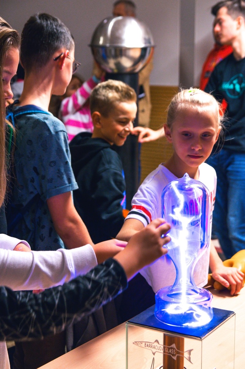Tradycyjnie największym zainteresowaniem cieszył się generator Van der Graaf'a, który tworzył na głowach gości niecodzienne, choć nietrwałe fryzury. Obserwować można było również wyładowania w gazach i lampę plazmową.
