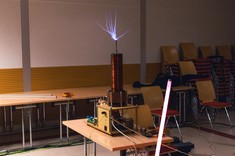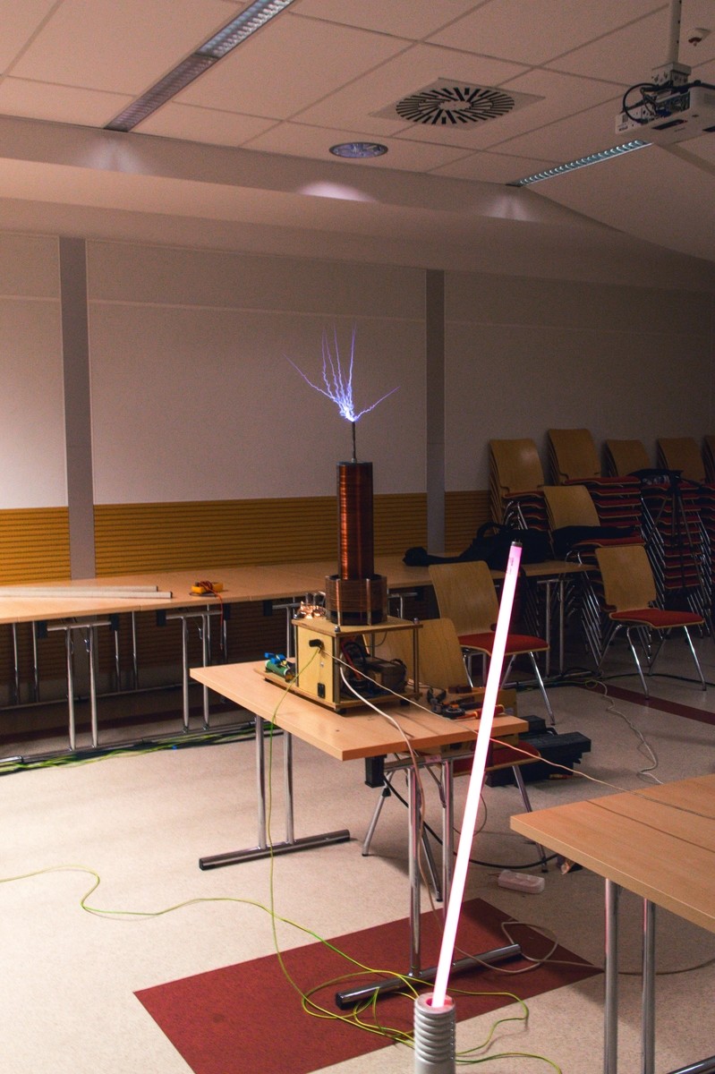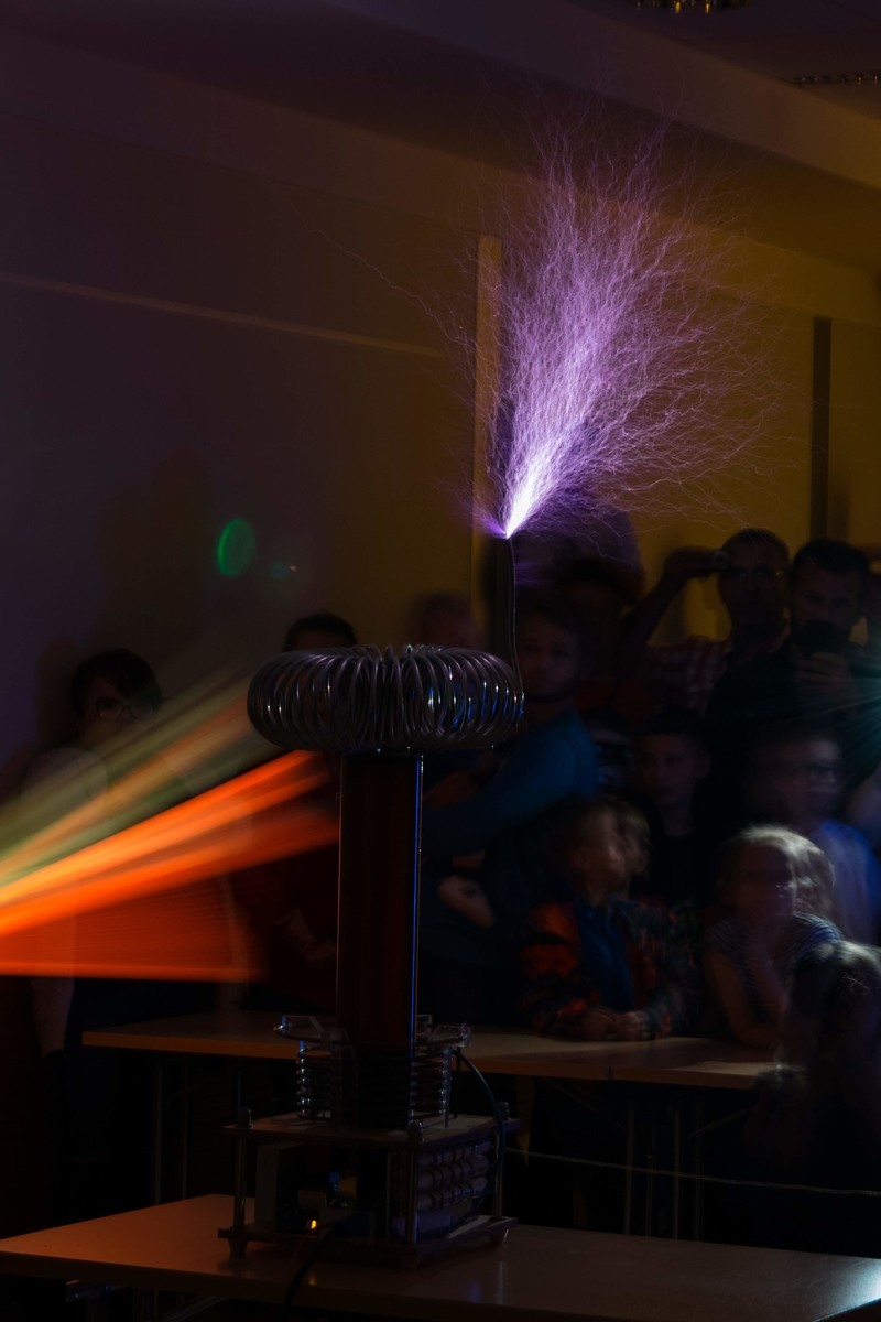 Pokazy uświetniły cewki tesli typu DRSSTC oraz VTTC, wykonane przez kolegów z TeslaCoil.