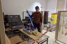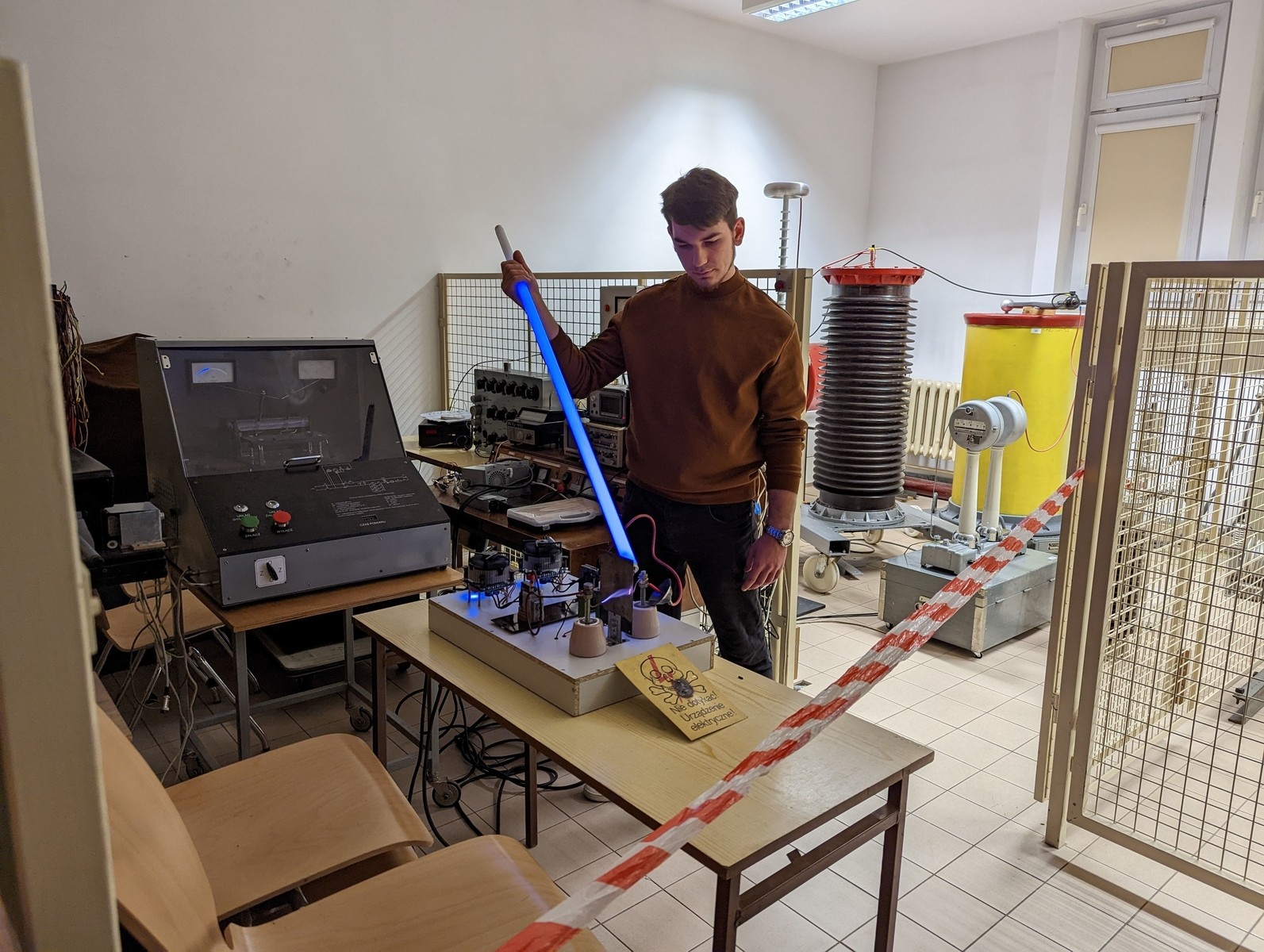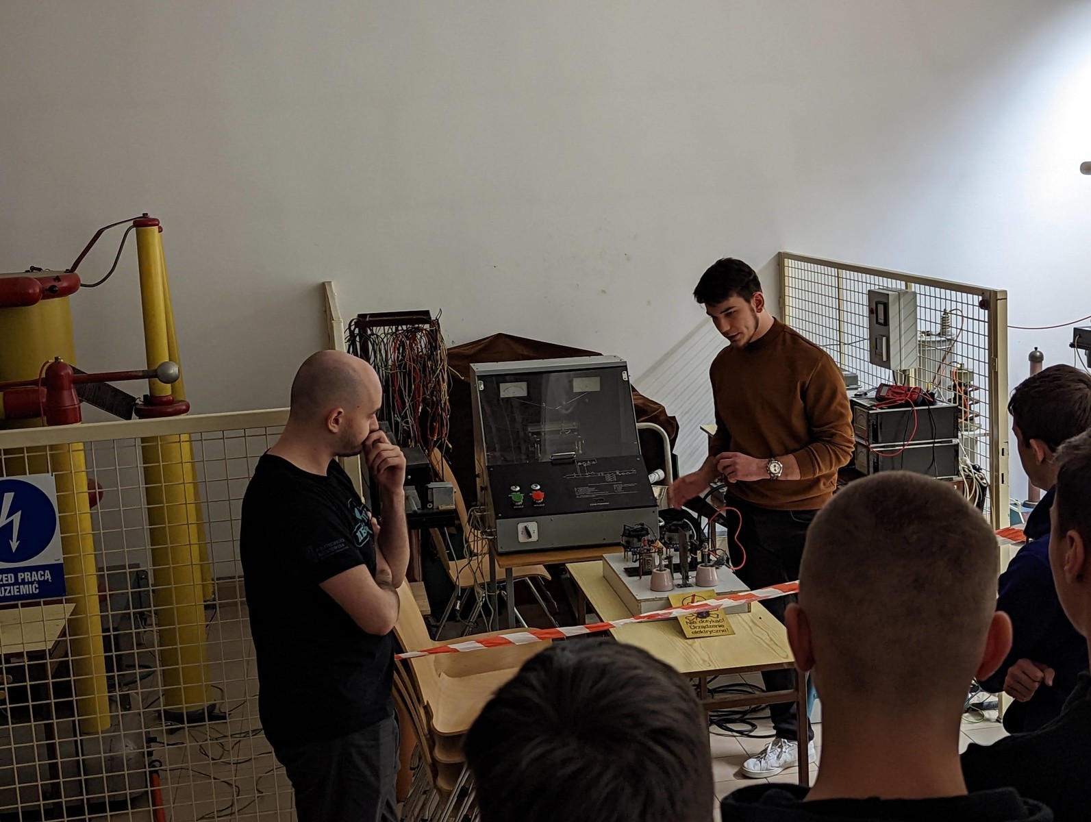 Dnia 02.12.2022r odwiedziła nas grupa uczniów-elektroników z zamojskiej szkoły. Zaprezentowaliśmy im m.in. Generator Marxa czy zasadę działania wyładowań ślizgowych.