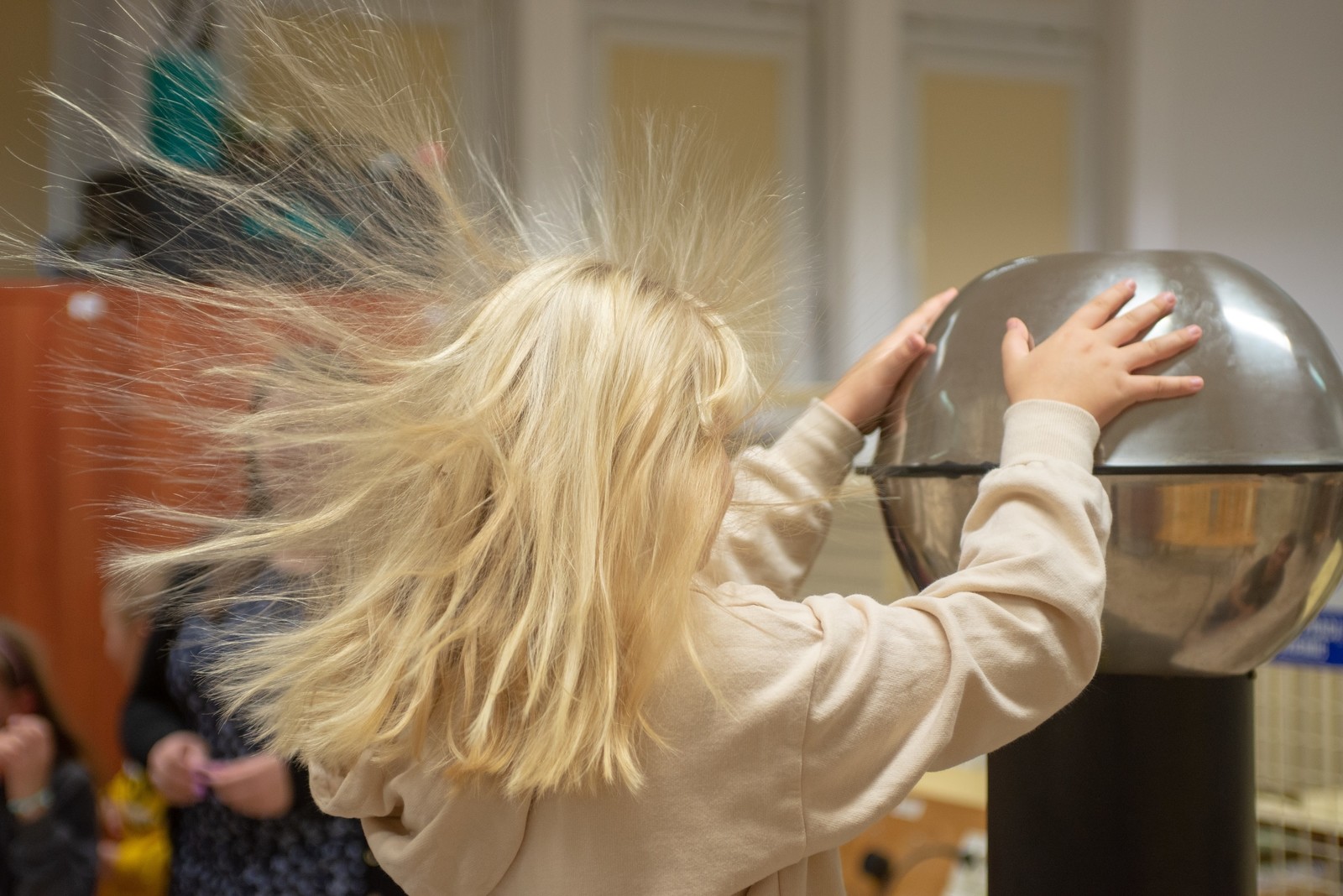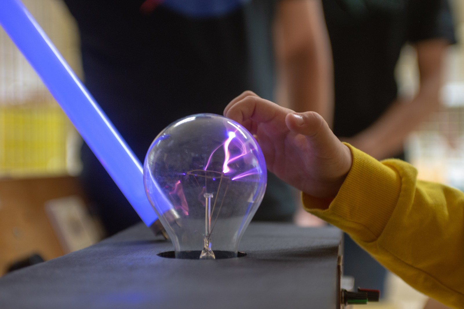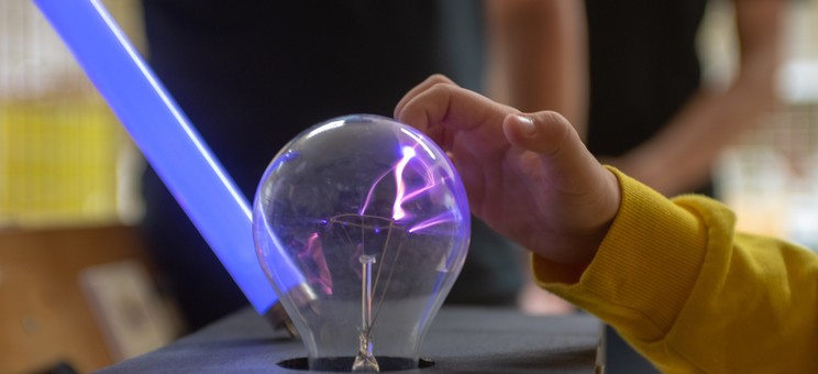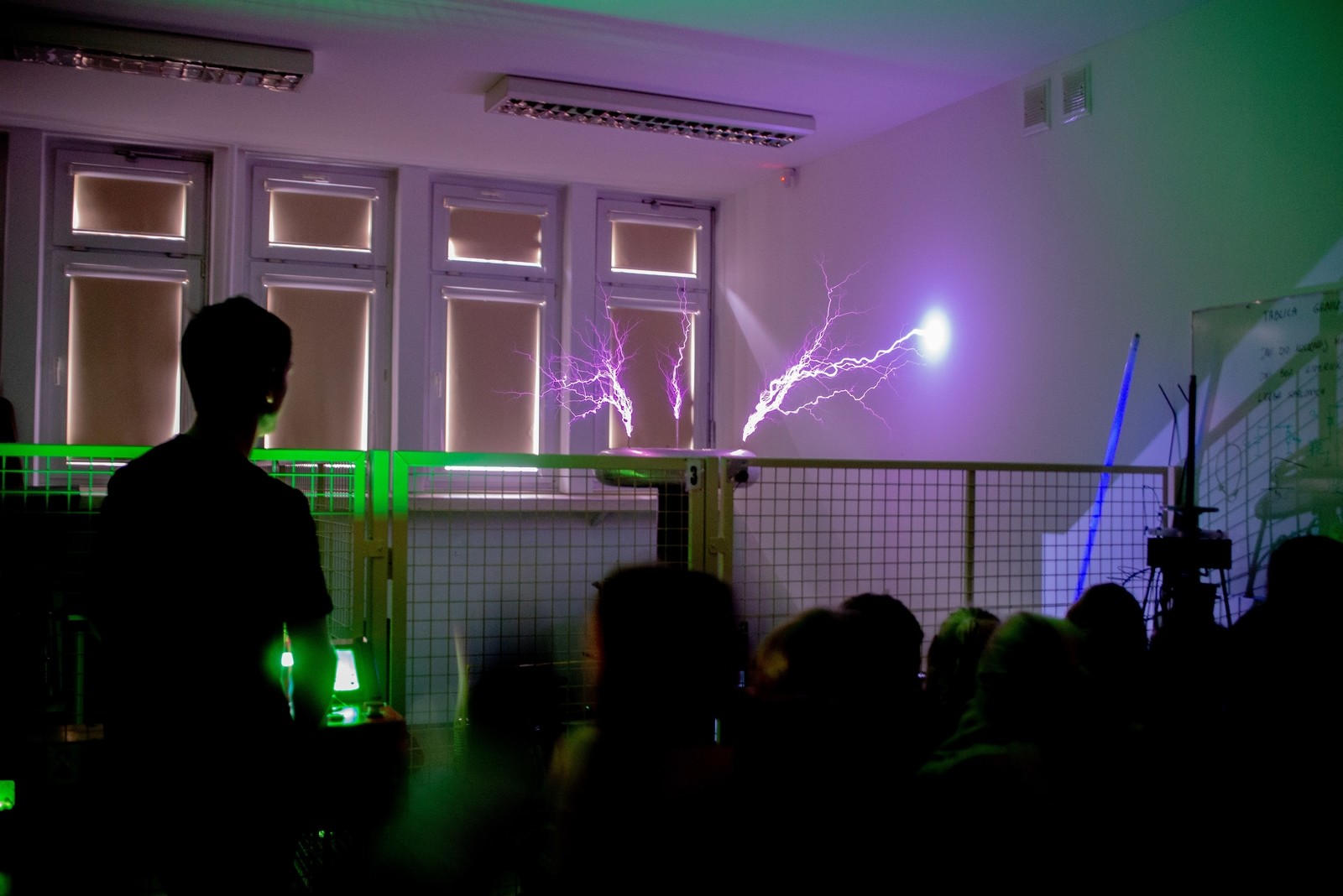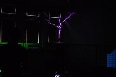 Zaciekawieni odwiedzający z chęcią oglądali przygotowane przez nas pokazy oraz zadawali nie takie proste pytania. Zaprezentowaliśmy urządzenia takie jak generator Marx'a, generator Van der Graaf'a oraz Cewkę Tesli.