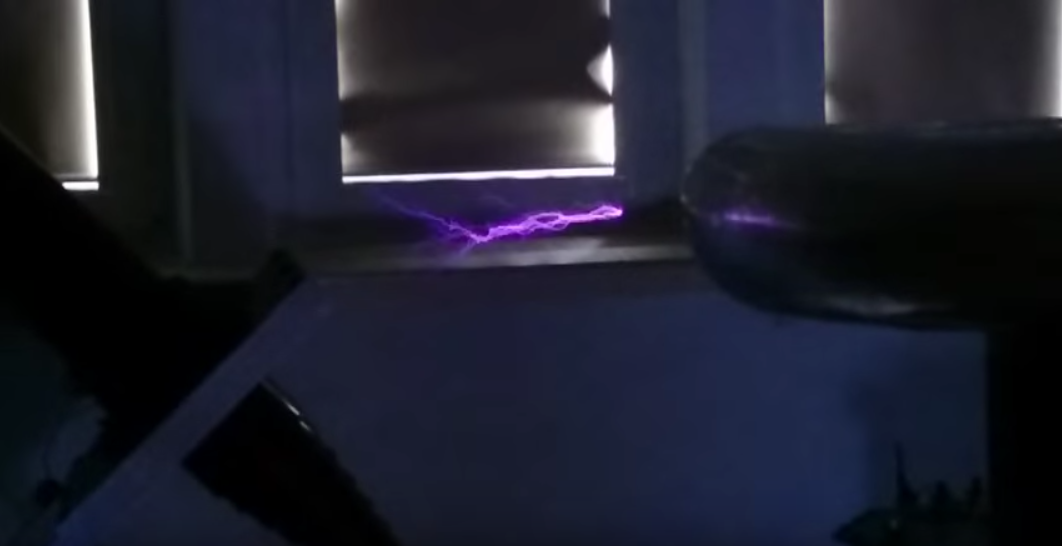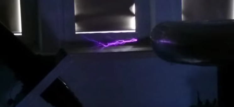 Transformator Tesli uruchamiany był już wcześniej jednak to jest pierwsze, które udało się zarejestrować. Obwód jeszcze niezestrojony....